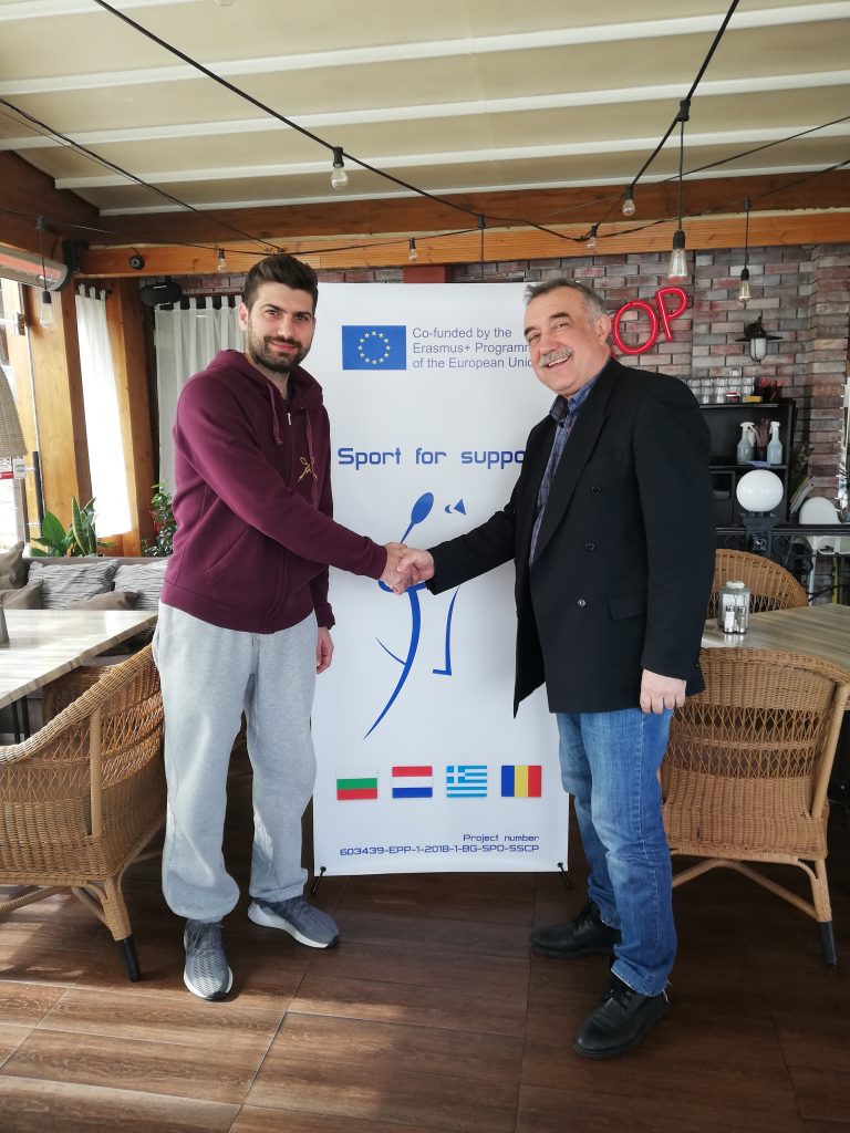 BC VIAS’s president Mr. Georgi Zhaygarov met the representative of the Greek partner (AGS Roupel – Sidirokastro, Greece) in Sandanski, Bulgaria. This is the first meeting relating to the implementation of the Sport for support! Project funded under the Erasmus+ Programme. The meeting was intended to increase the cohesion and facilitate the efforts of both partners in the project implementation process.